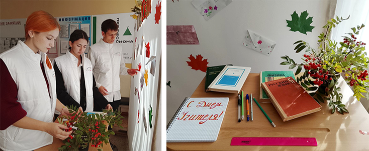 Осенние листья, гроздья рябины, теплые пожелания – и получился своеобразный осенний стенд поздравлений, создателями которого стали социальный педагог О.Б. Короткова и амбассадоры федерального проекта «Профессионалитет», который реализуется в рамках национального проекта «Молодежь и дети»
