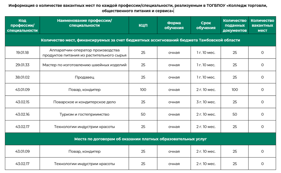 Особенности проведения вступительных испытаний для инвалидов и лиц с ограниченными возможностями здоровья отражены в Правилах приема в ТОГБПОУ «Колледж торговли, общественного питания и сервиса» на 2025–2026 учебный год.